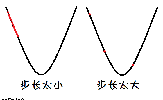 这就很符合上面我们所说的下山。你新的站立点是你旧的站立点减去你每步的长度乘上下山的方向。