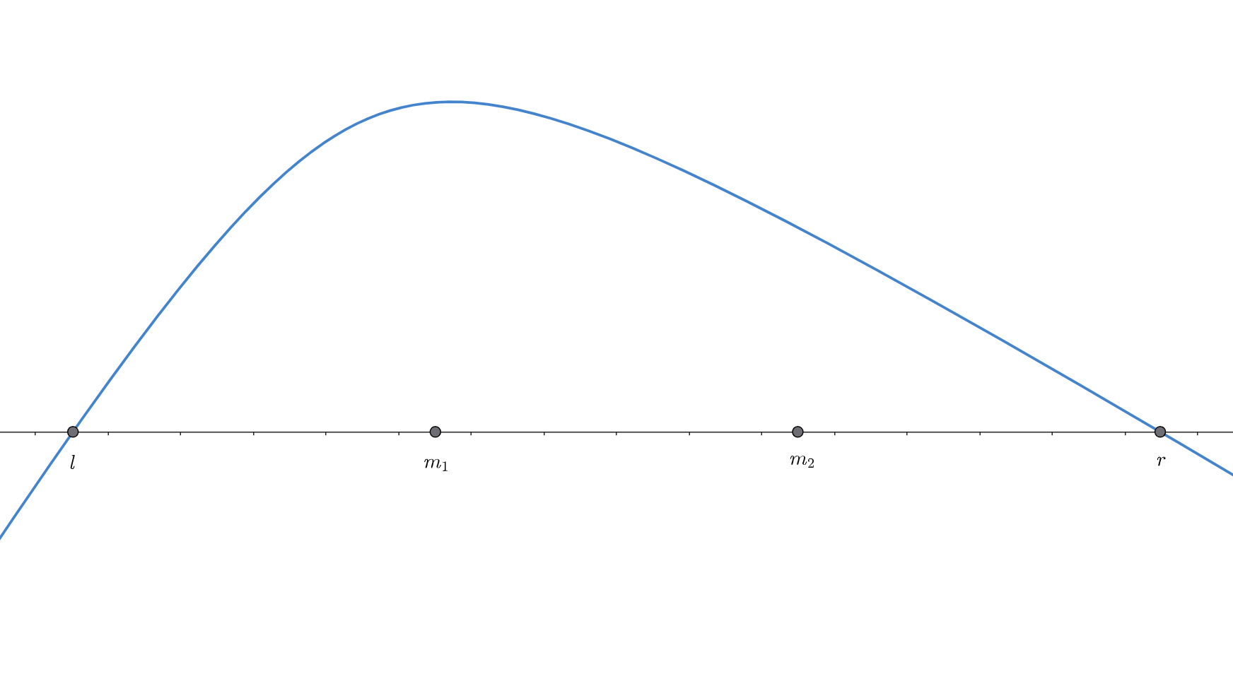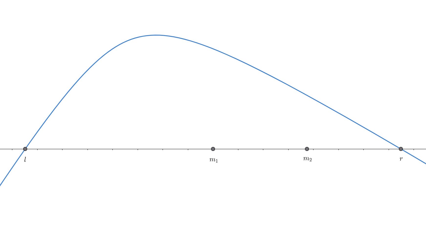if(f(m1)<f(m2))l=m1; // 小于时舍去左边