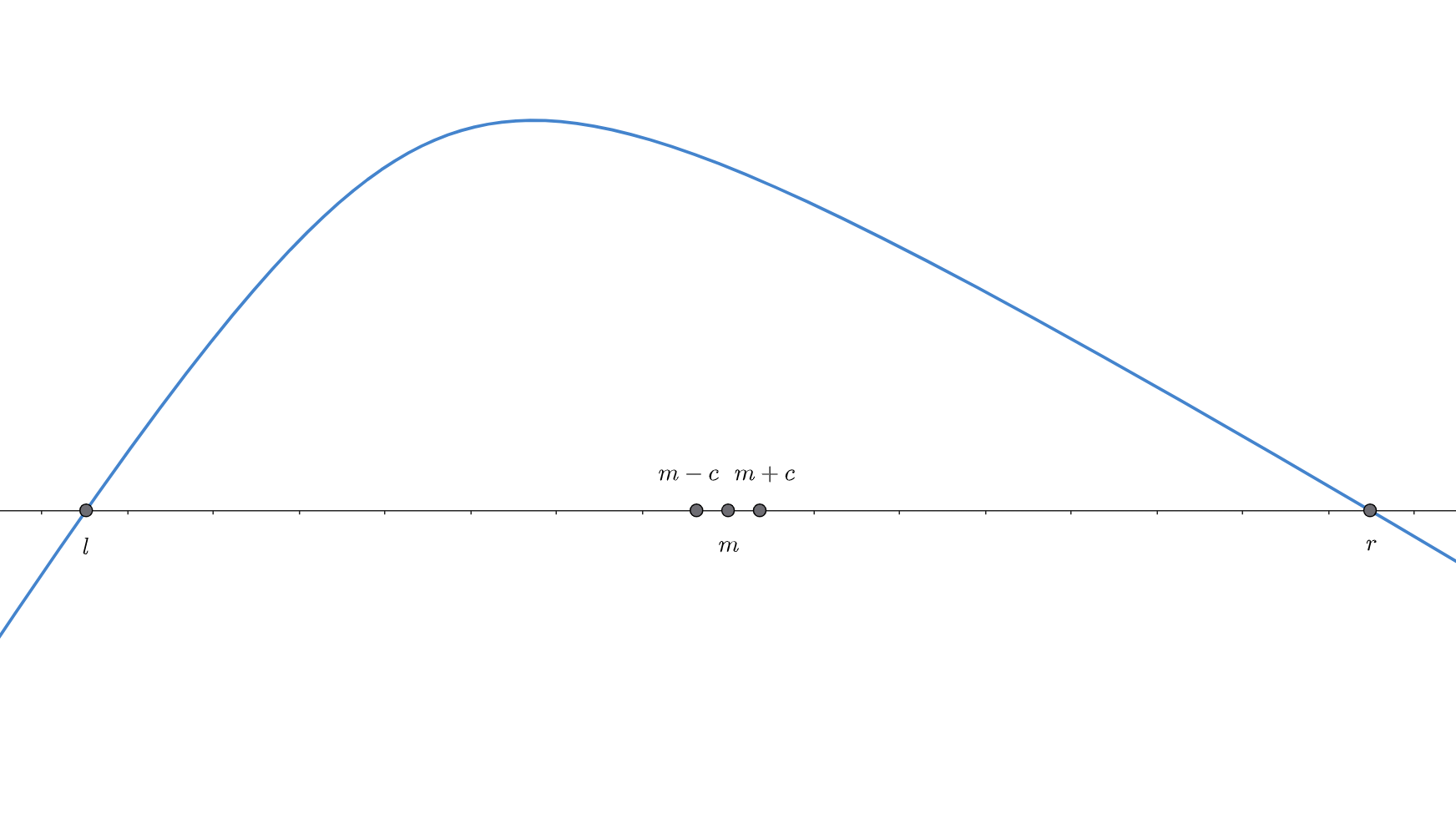 我们知道,函数峰值处导数为 . 因为是单峰,所以可以先对原函数求导,然后找 和 之间使 的值. 此时问题就转化成了二分查找(或牛顿迭代法等函数求零点算法).