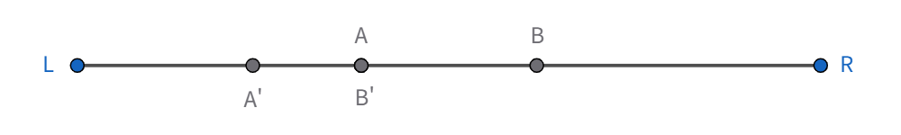 如上图,假如第一次比较在原线段上对称的两个点 和 ,不妨假设去掉了 右侧的部分.